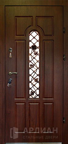 Эксклюзивная дверь уличная со стеклом и ковкой №19