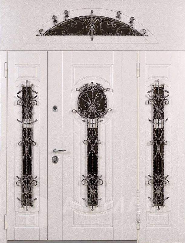 Фото «Парадная стальная дверь с боковой фрамугой и ковкой №20»