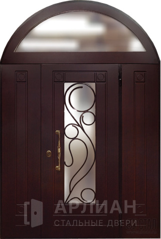 Входная арочная дверь с витражом и решеткой №419