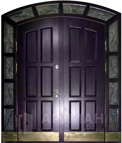 Эксклюзивная арочная дверь в коттедж со стеклянными вставками №10