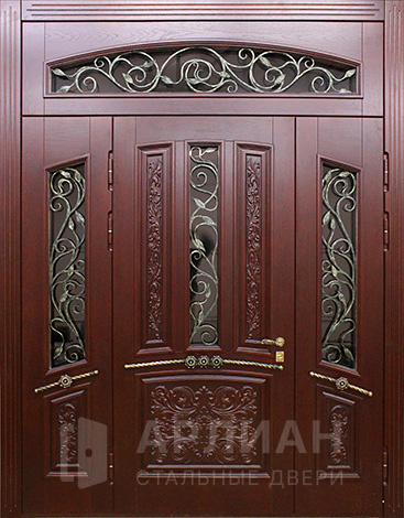 Стальная входная дверь с ковкой и решеткой в полной комплектации №52